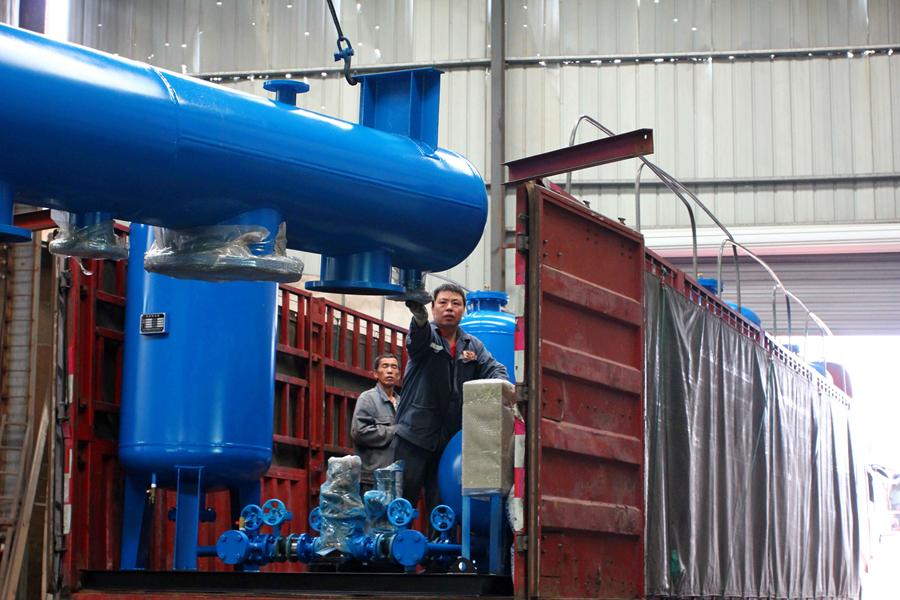 此次四聯(lián)智能技術(shù)股份有限公司一共訂貨:ZNQG囊式全自動(dòng)氣壓供水裝置(定壓補(bǔ)水裝置)6套、ZJN全自動(dòng)鈉離子軟水器2套、集(分)水器4臺。應(yīng)用于西安萬科金色悅城。圖為設(shè)備裝車現(xiàn)場: